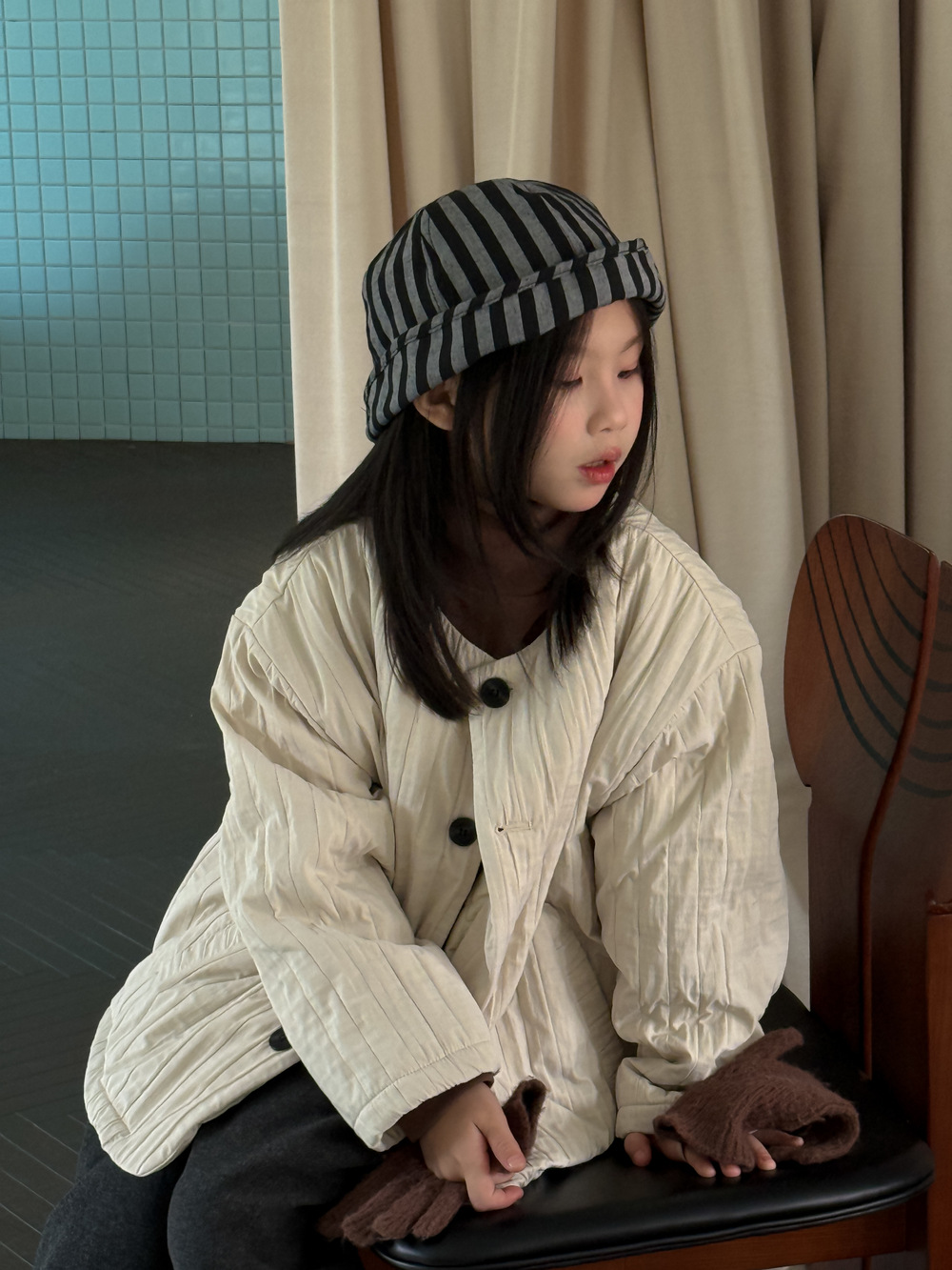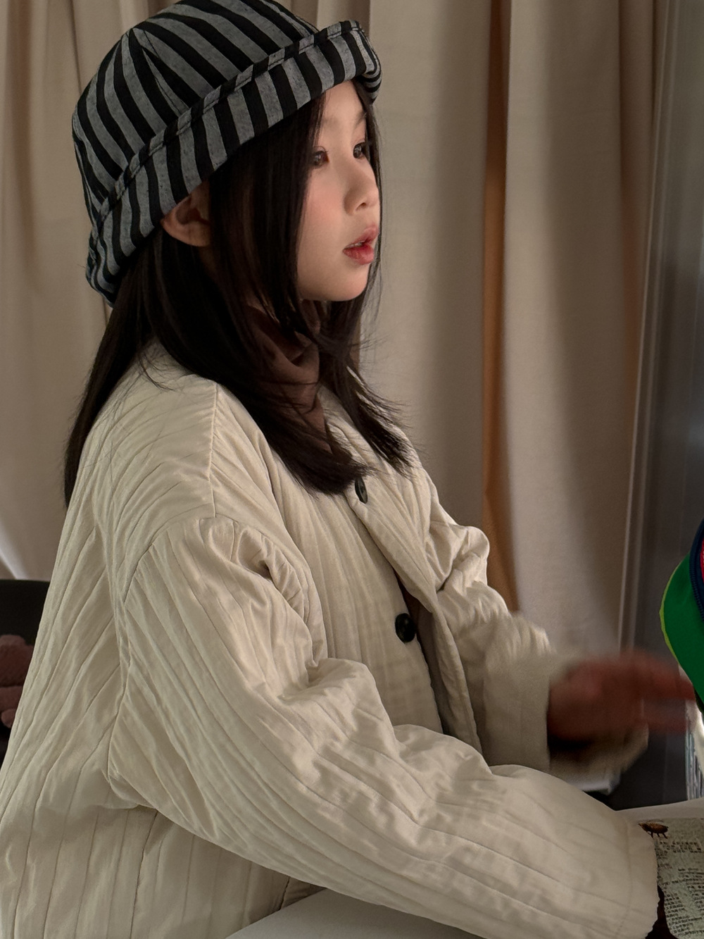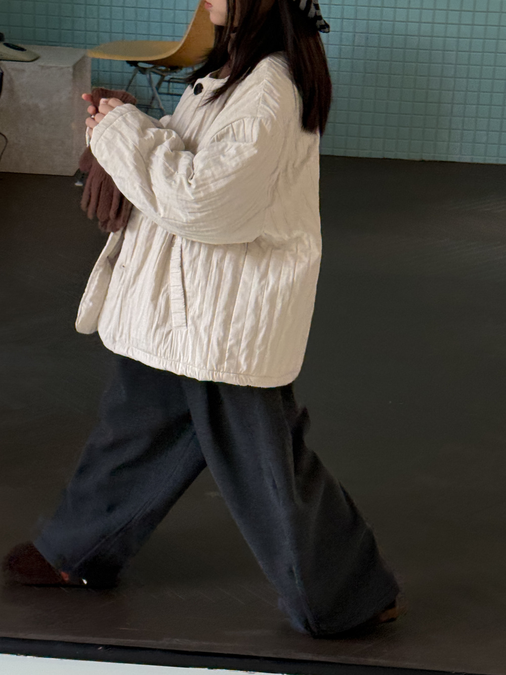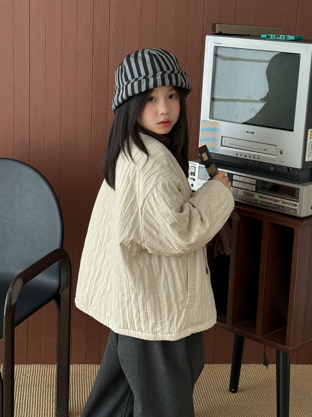 溫特 Winter - 韓版豎條文圓領加厚棉服上衣外套