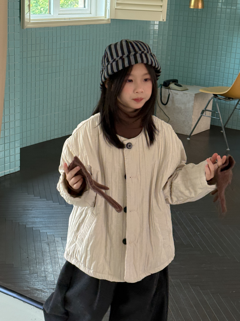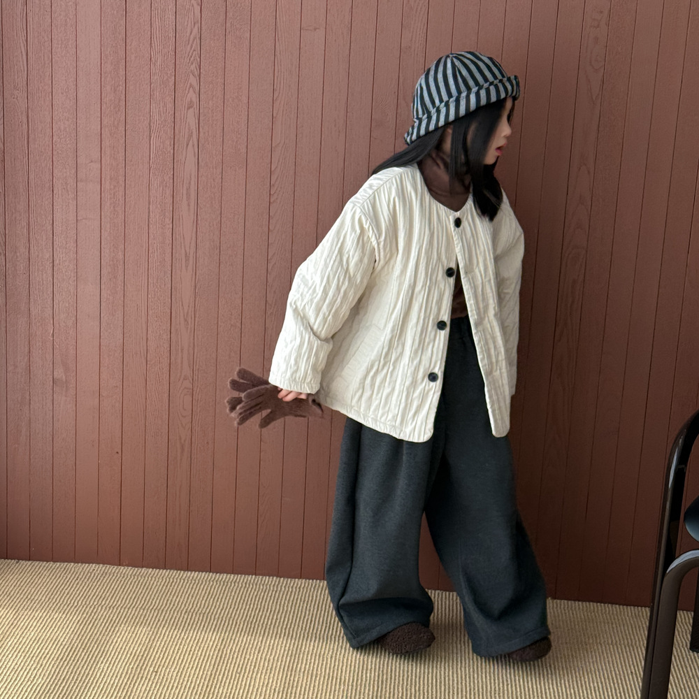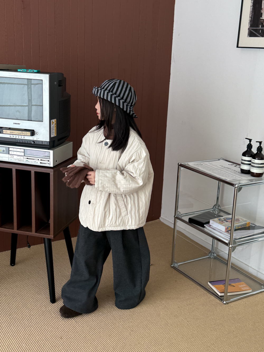 溫特 Winter - 韓版豎條文圓領加厚棉服上衣外套
