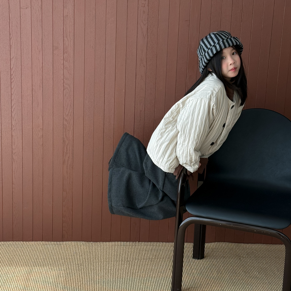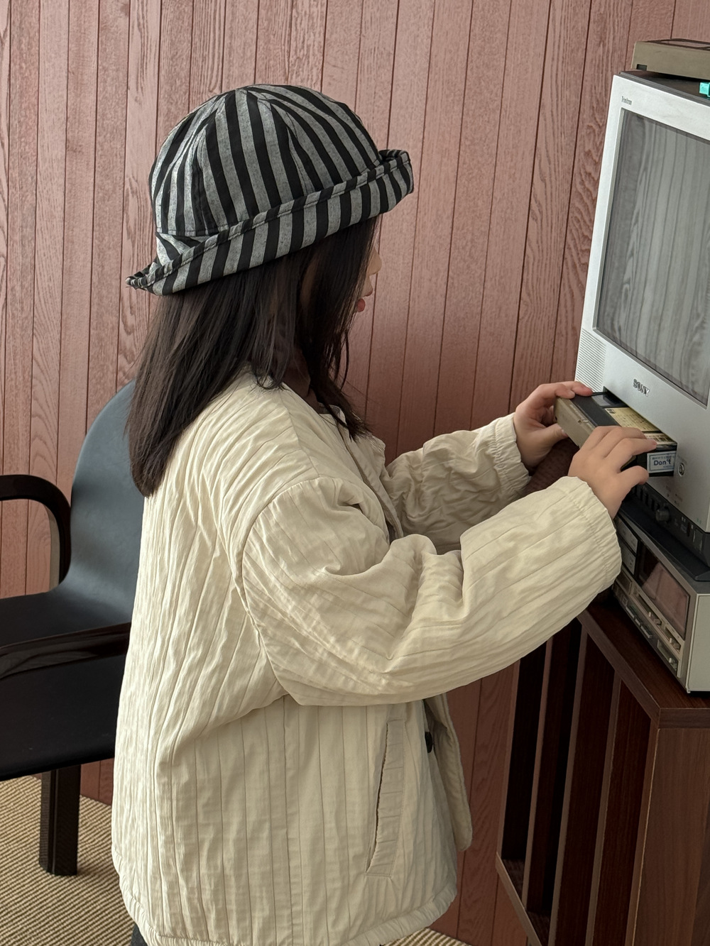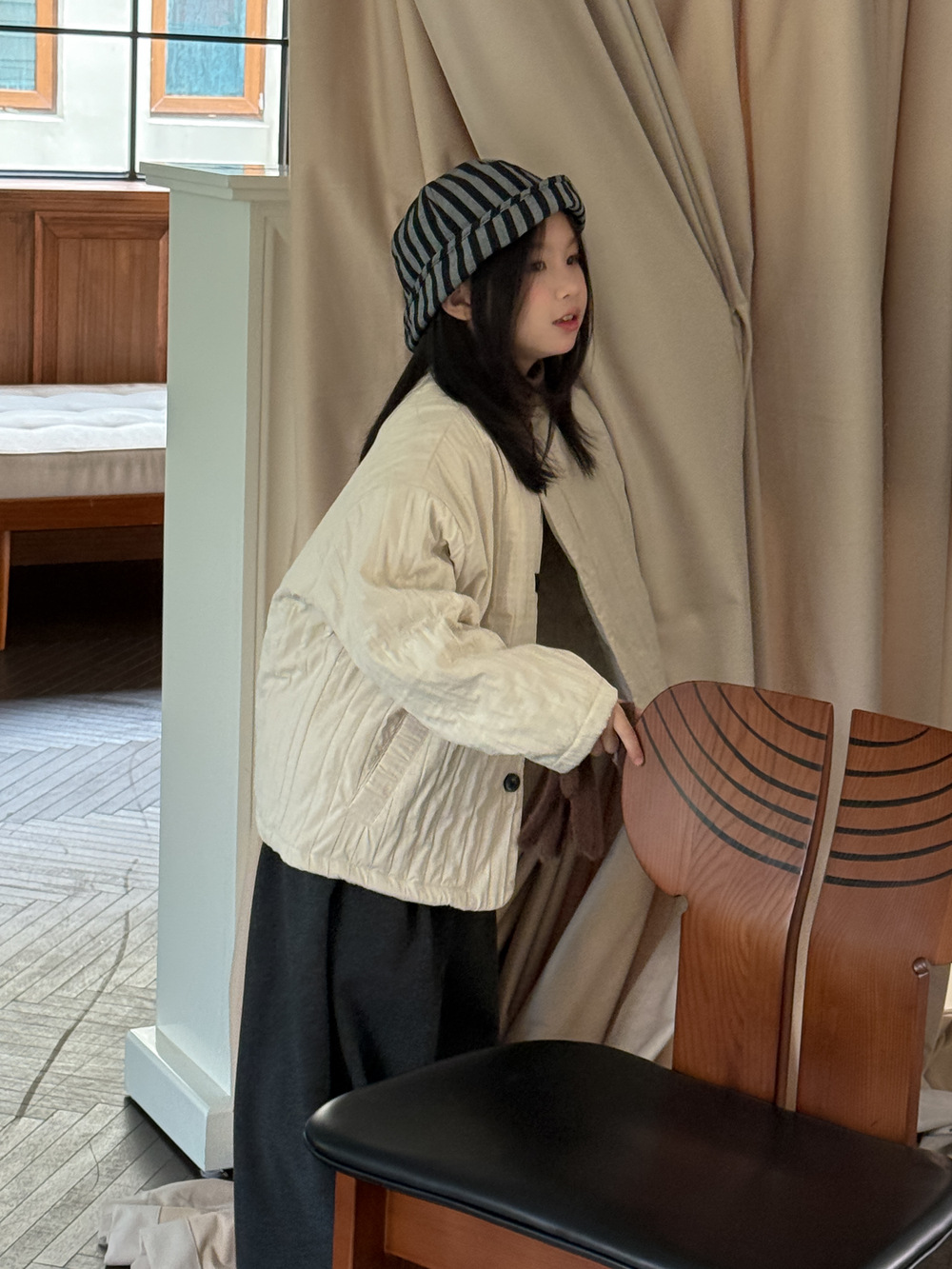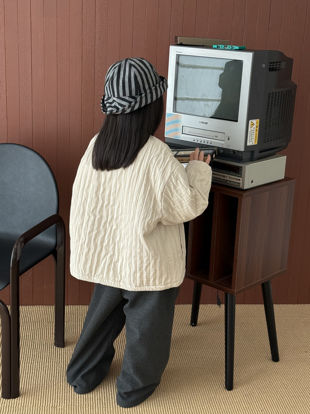 溫特 Winter - 韓版豎條文圓領加厚棉服上衣外套