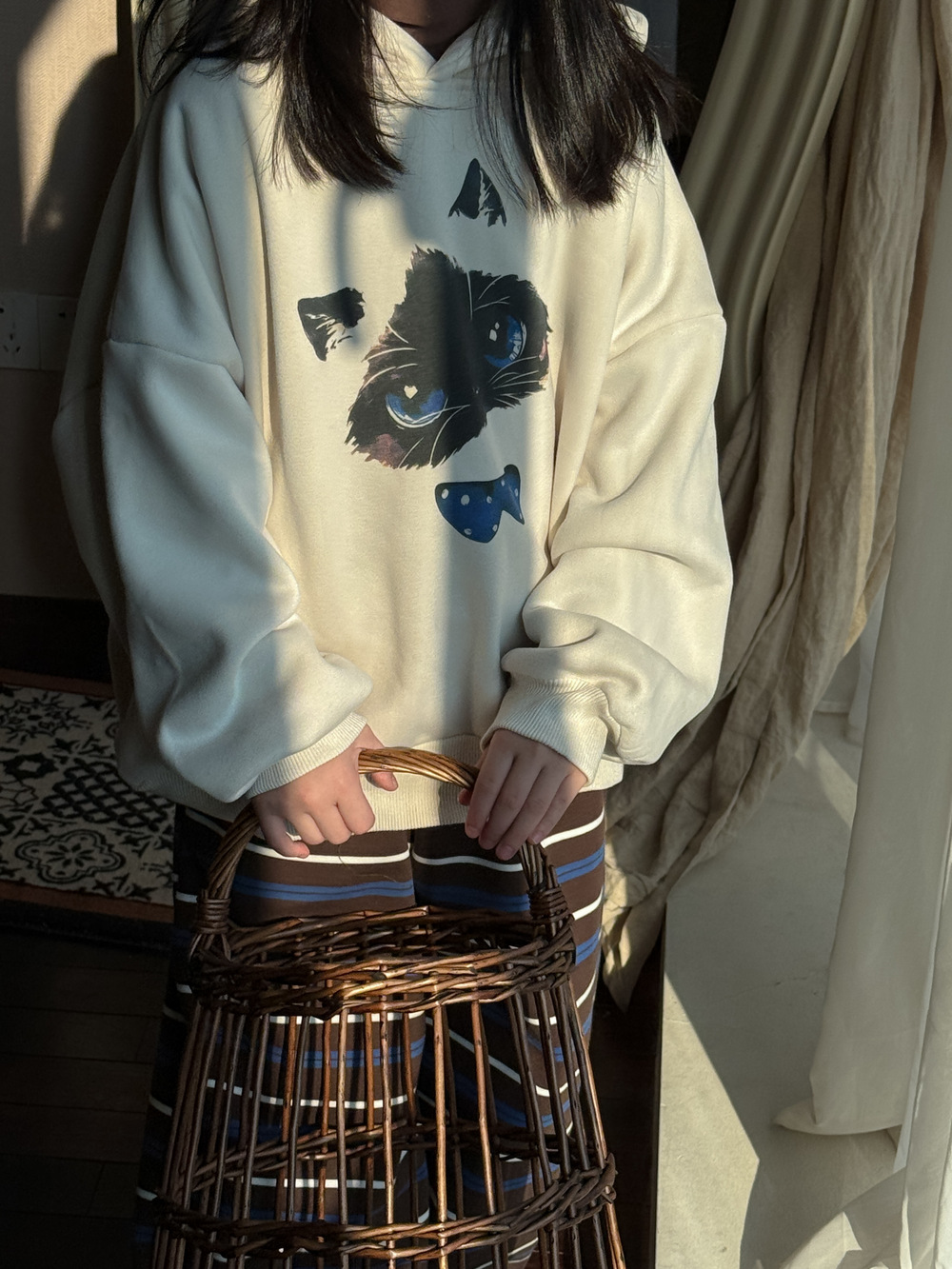 溫特 Winter - 韓版連帽貓咪印花寬鬆休閒上衣